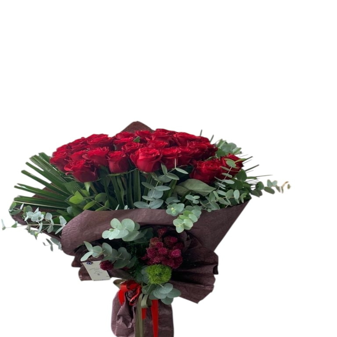 "9 kırmızı gülden oluşan bu ihtişamlı buket, aşkınızın derinliğini ve tutkularınızın büyüklüğünü en anlamlı şekilde ifade eder. Özenle seçilmiş her bir gül, romantizmin zarif bir sembolü olarak bir araya getirilmiştir. Sevdiğinize unutulmaz bir hediye vermek ve duygularınızı en şık şekilde iletmek için bu buket mükemmel bir tercihtir.