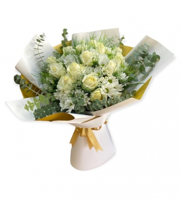 Beyaz Güller Ve Papatyalardan hazırlanmıştır.