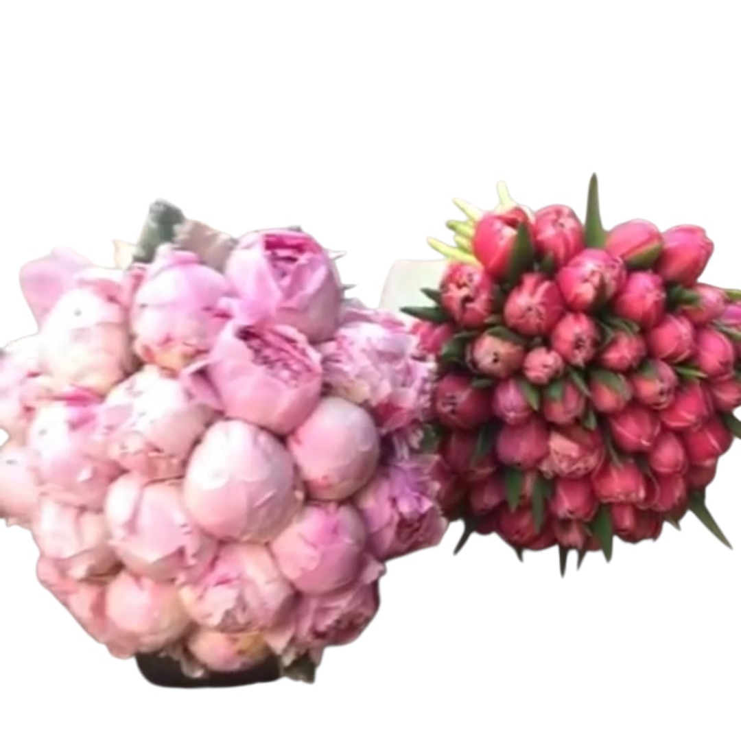 Bridal Bouquet Pink Peony Pink Tulipa Gelin Buketi 15 Pembe Şakayık ve 30 Pembe Lale