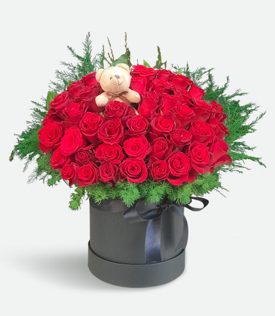Kutu içerisine kırmızı gül ile hazırlanmıştır.