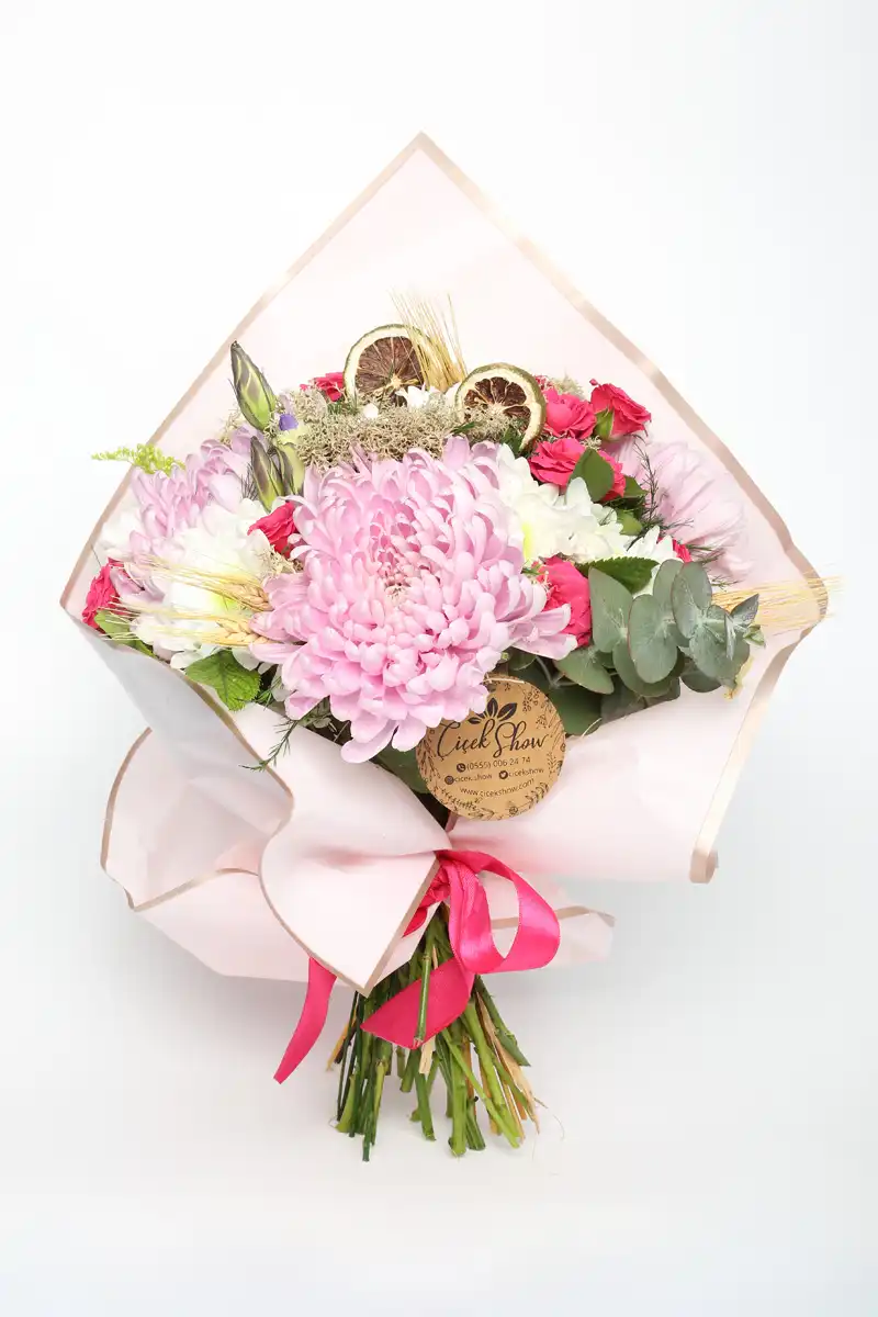 "Anastasia çardak gülü, ithal gül ve krizantem çiçeklerinin zarif birleşimiyle oluşturduğumuz bu buket, şıklığı ve zarafetiyle dikkat çekiyor. Hem estetik hem de anlam dolu bir hediye arayışında olanlar için mükemmel bir seçenek.