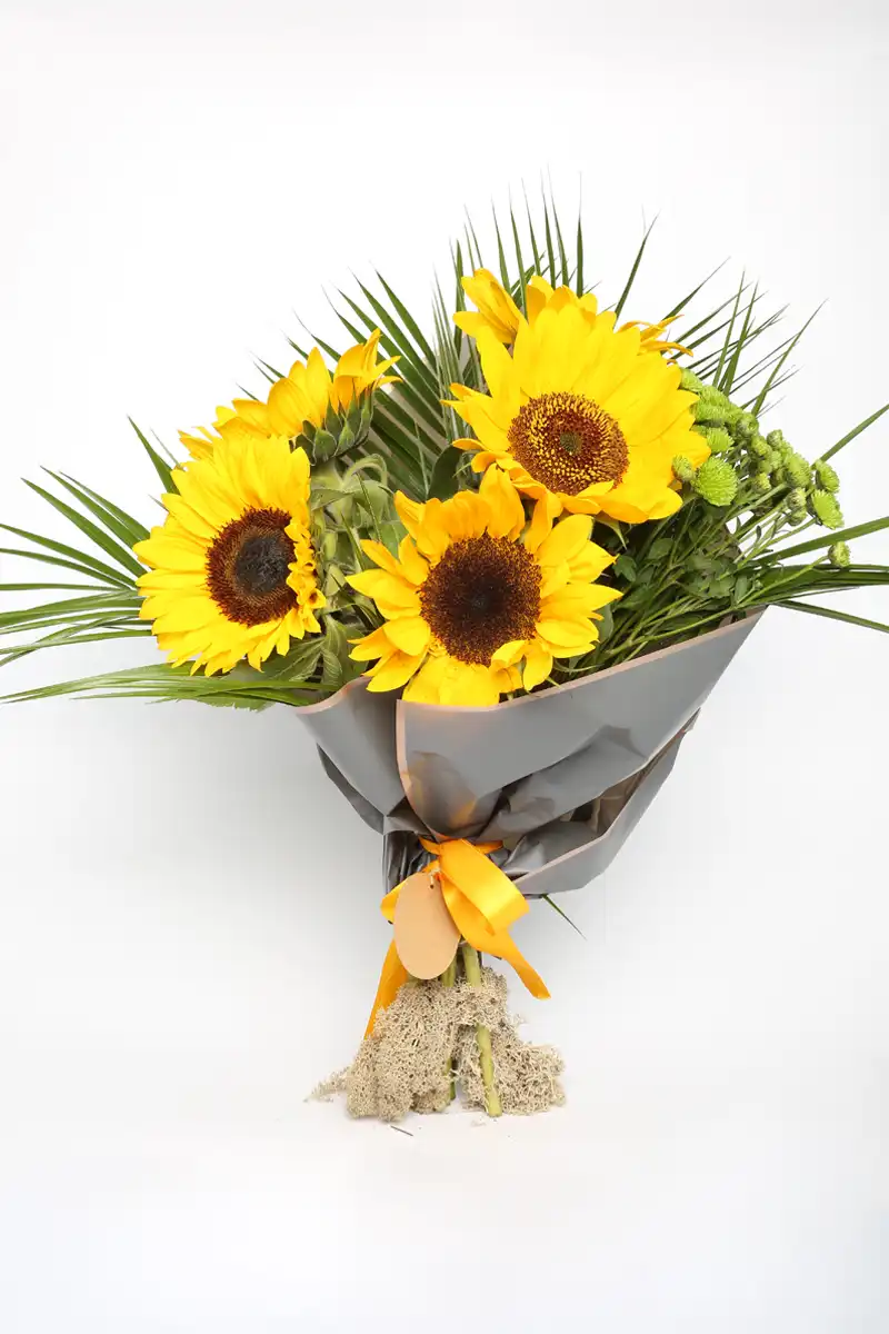 Smile Face Gülen Yüz Ay çiçeği ve yeşil krizantem ile hazırlanmıştır.