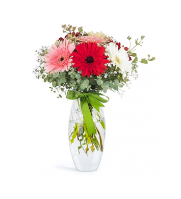 Vazo içerisinde renkli gerberalar ile hazırlanmıştır.